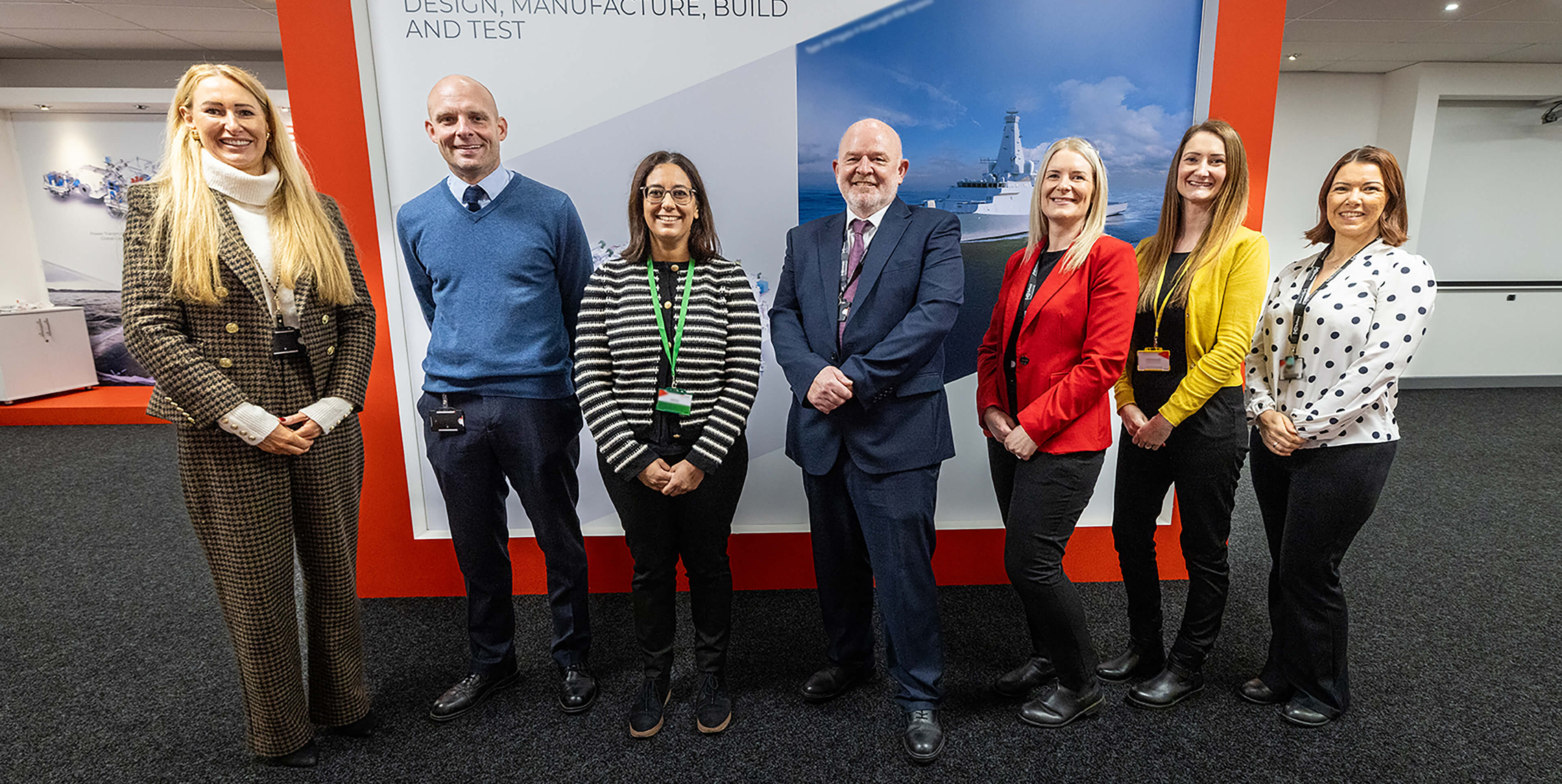 L-R: Kate Norman, Chief Organisation & Development Officer (DBS Group), David Scott, IPT Director - Land (DB Defence), Harpreet Uppal, MP Huddersfield, Mike Helme, Managing Director (DB Defence), Jo Spalding, Head of Business Performance & HSE (DB Defence), Jennie Nicholls, Head of Marketing (DBS Group) and Michelle Rodgers, UK Proposals and Purchasing Manager (DB Defence).